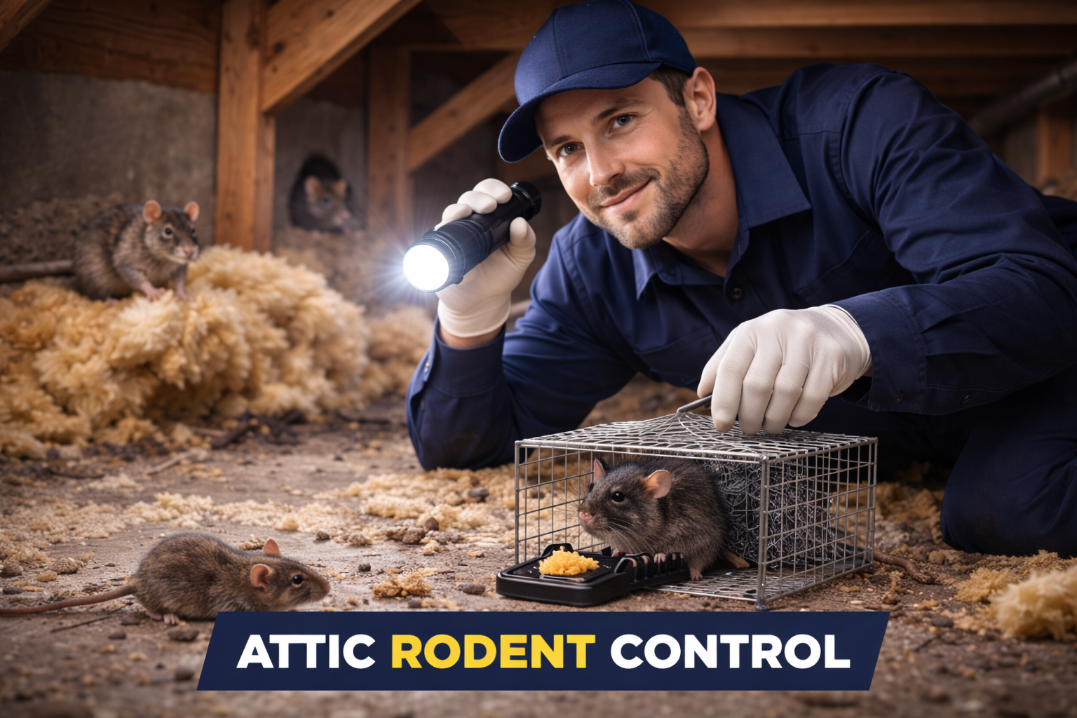 Attics are one of the most common nesting areas for rats and mice. Attic rodent control services typically include inspection of insulation, detection of nesting activity, trapping programs, and sealing of roof-level entry points. Addressing infestations at the attic level helps stop scratching noises, odor issues, and ongoing contamination concerns.