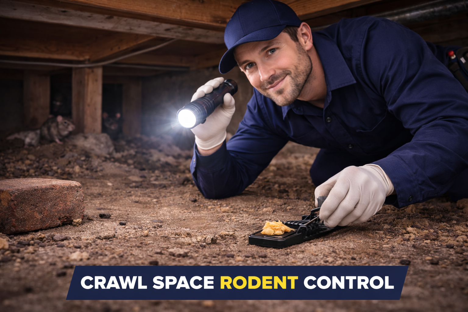 Crawl spaces provide warmth, shelter, and access to plumbing and ductwork, making them attractive to rodents. Crawl space rodent control focuses on identifying burrowing activity, installing traps, sealing foundation gaps, and reducing conditions that encourage nesting. Proper crawl space treatment can significantly reduce repeat infestations.